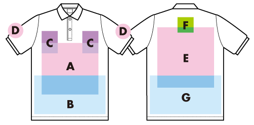 ※プリント場所を増やしたり色数を増やす場合は1箇所1色増えるごとに上記追加料金を足してください。