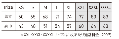 ※プリント場所を増やしたり色数を増やす場合は1箇所1色増えるごとに上記追加料金を足してください。