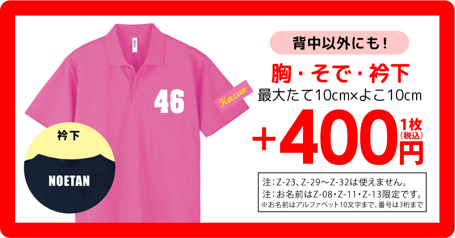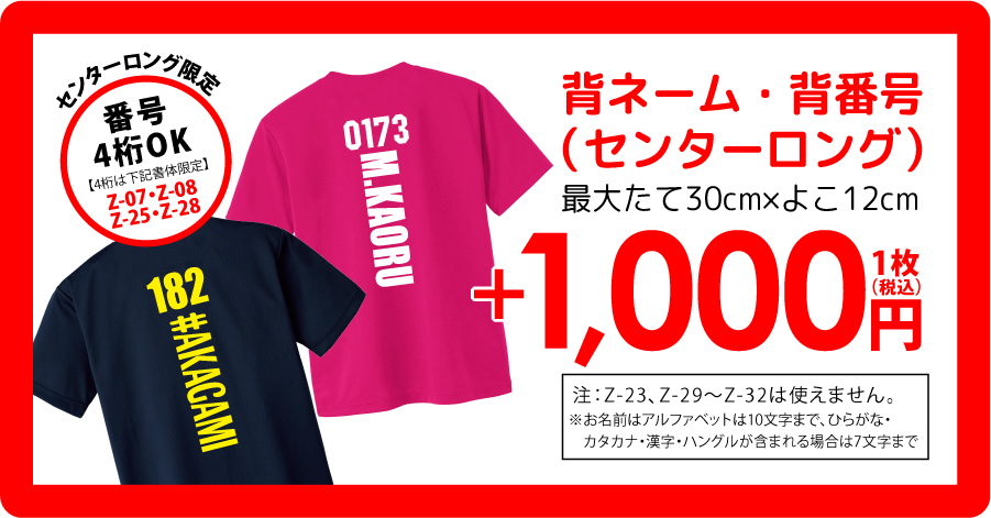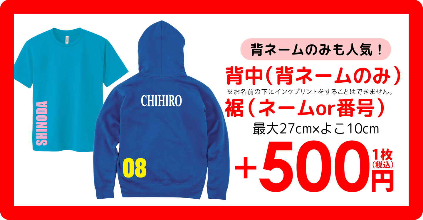 背ネーム・背番号の内容が決まったら、他にプリントしたいデザインも一緒に