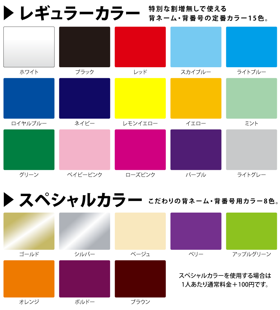 ※インクプリント用のカラーとは加工方法が異なるので同じ色名でも全く同じ色ではありません。