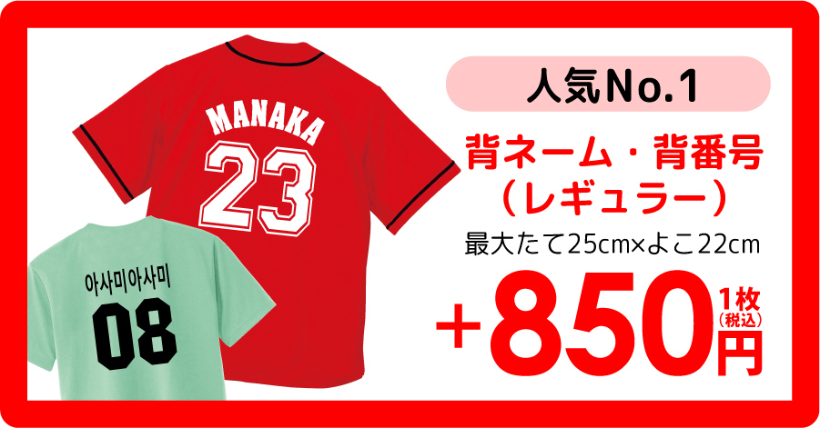 背ネーム・背番号の内容が決まったら、他にプリントしたいデザインも一緒に