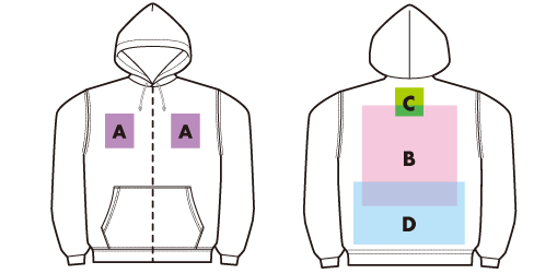 ※プリント場所を増やしたり色数を増やす場合は1箇所1色増えるごとに上記追加料金を足してください。