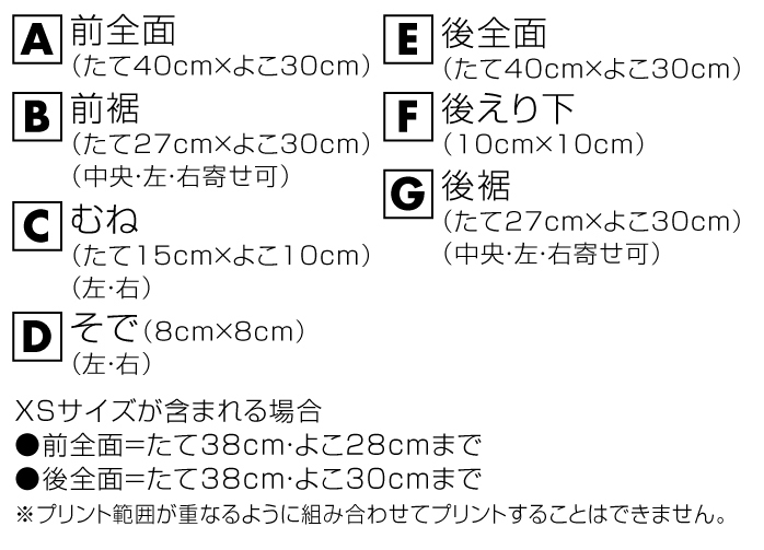 ※プリント場所を増やしたり色数を増やす場合は1箇所1色増えるごとに上記追加料金を足してください。