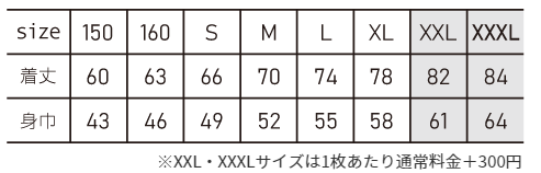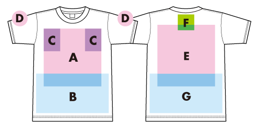 ※プリント場所を増やしたり色数を増やす場合は1箇所1色増えるごとに上記追加料金を足してください。
