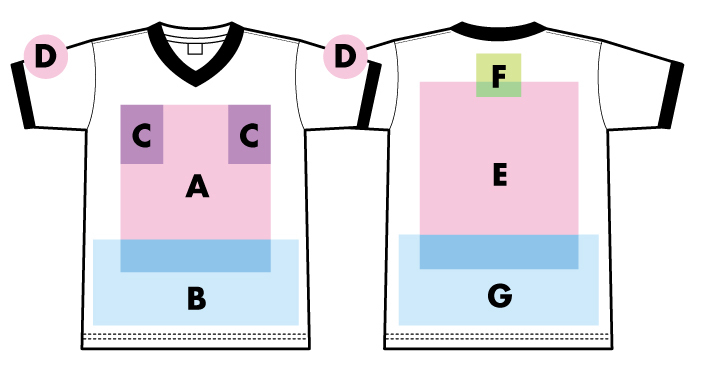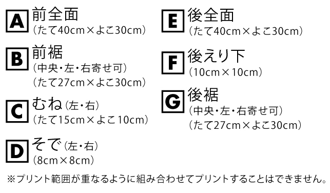 ※プリント場所を増やしたり色数を増やす場合は1箇所1色増えるごとに上記追加料金を足してください。