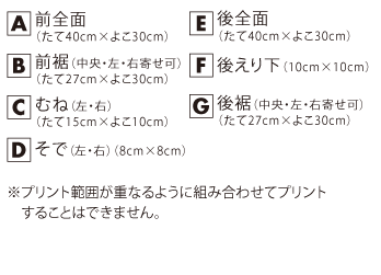 ※プリント場所を増やしたり色数を増やす場合は1箇所1色増えるごとに上記追加料金を足してください。