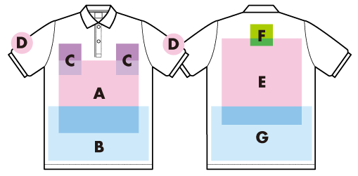 ※プリント場所を増やしたり色数を増やす場合は1箇所1色増えるごとに上記追加料金を足してください。