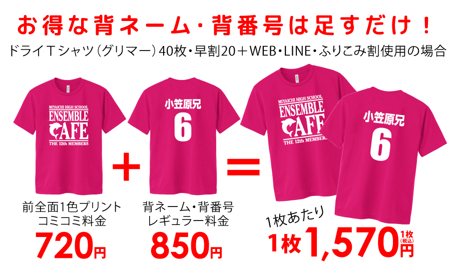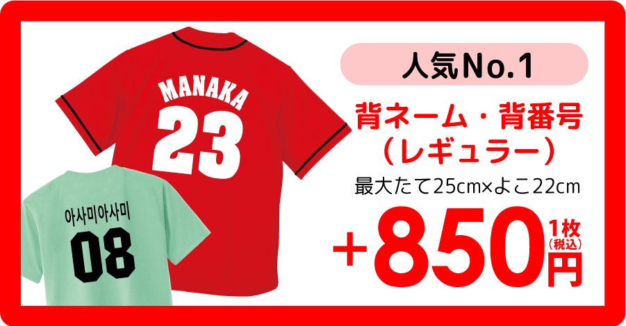 背ネーム・背番号の内容が決まったら、他にプリントしたいデザインも一緒に