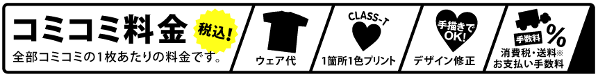 ※プリント場所を増やしたり色数を増やす場合は、1箇所1色ごとに上記追加料金を足してください。