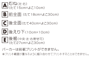 ※プリント場所を増やしたり色数を増やす場合は、1箇所1色ごとに上記追加料金を足してください。