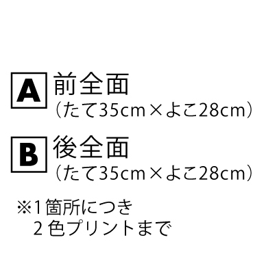 ※プリント場所を増やしたり色数を増やす場合は1箇所1色増えるごとに上記追加料金を足してください。