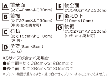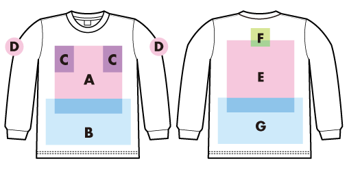 ※プリント場所を増やしたり色数を増やす場合は1箇所1色増えるごとに上記追加料金を足してください。